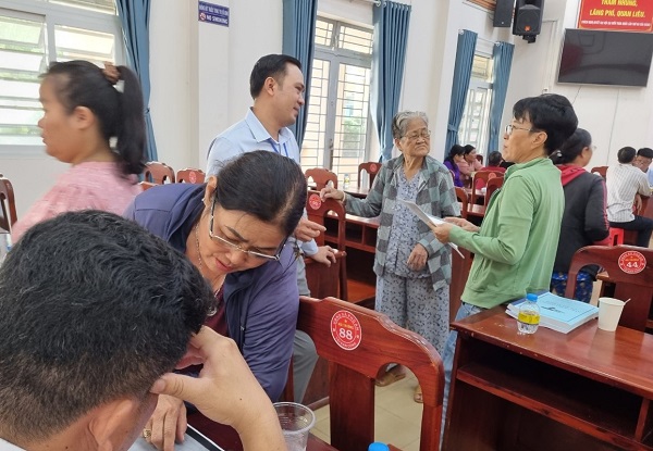 Tại đây, người dân đã đặt nhiều câu hỏi liên quan đến các vấn đề: Người dân hiện nay đang sử dụng miếng đất để làm nhà trọ nhưng chưa chuyển mục đích, nay xin được hướng dẫn chuyển mục đích; trong nhà có 1 ngôi mộ, giờ người dân muốn thực hiện việc cấp đổi GCN để 100% đất ở nên xin hướng dẫn cách thực hiện; hướng dẫn quy trình, thủ tục cấp đổi GCN theo Quyết đinh 934/QĐ-UBND; khi xưa thực hiện việc chuyển nhượng nhưng thời điểm đó được cấp GCN là hộ gia đình cá nhân nên giờ xin hướng dẫn đổi từ hộ sang cá nhân; cá nhân xin được thu hồi đất làm đường để cho rộng lối đi; cá nhân xin làm thủ tục thừa kế tài sản của chồng, cha trong gia đình (là con 1 của gia đình chồng) nhưng hiện tại UBND phường Linh Trung, Q, Thủ Đức không chịu xác nhận cha mẹ chồng đã mất nên xin được hướng dẫn cách giải quyết;.... đều được các cán bộ hướng dẫn, trợ giúp pháp lý tư vấn giải quyết kịp thời, đầy đủ.