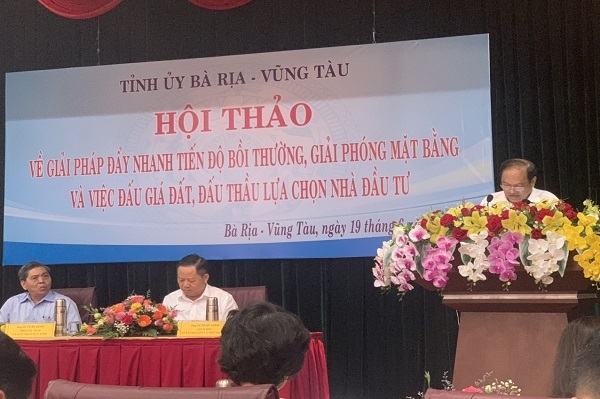 Ngày 19/06/2020, Ủy ban nhân dân tỉnh Vũng Tàu đã tổ chức Hội thảo các giải pháp đẩy nhanh tiến độ bồi thường, giải phóng mặt bằng, đấu giá đất, đấu thầu lựa chọn nhà đầu tư.