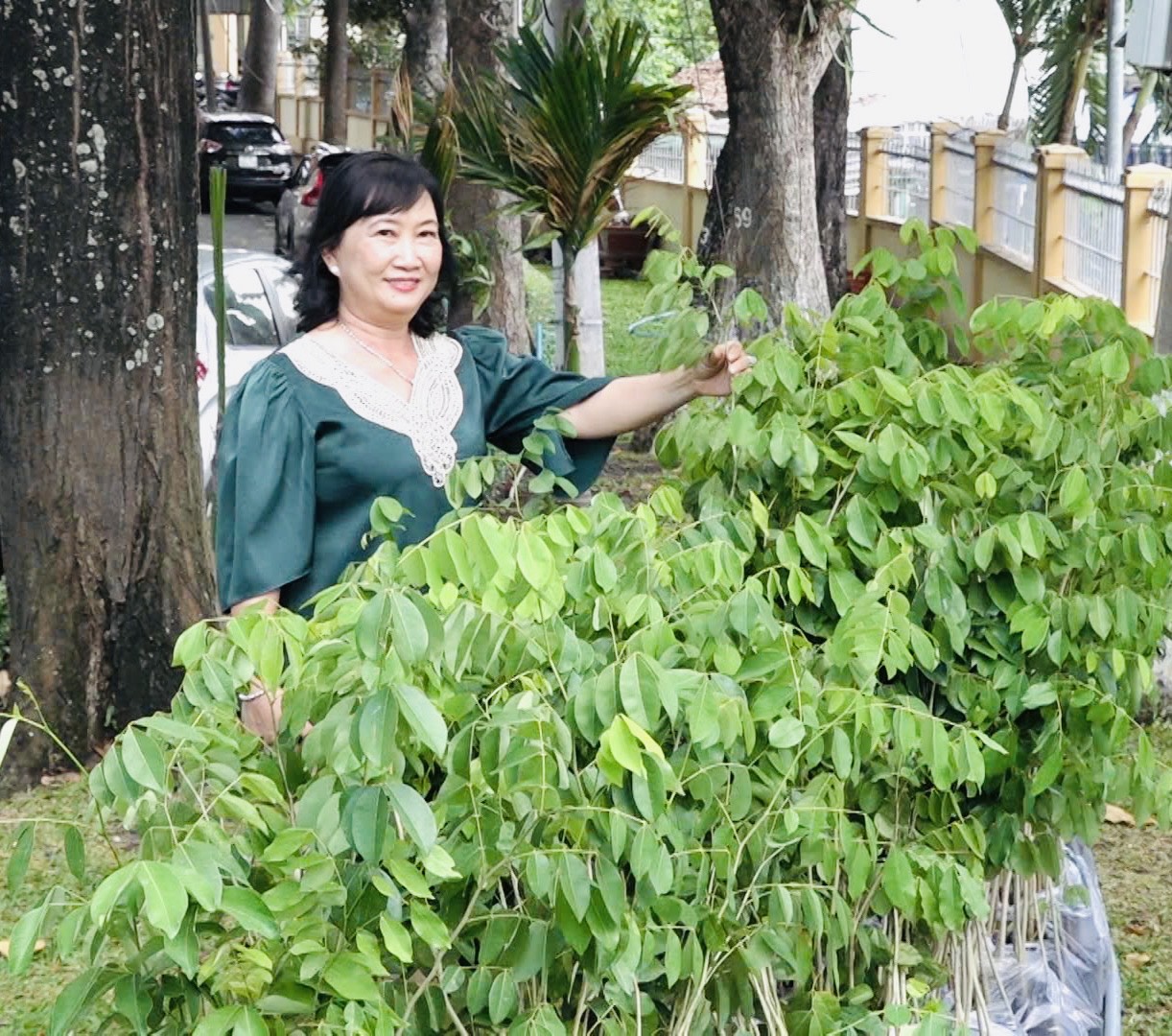 Bà Nguyễn Hồng Loan vận chuyển cây xanh đến UBND TP.Thủ Dầu Một hỗ trợ góp sức cùng thành phố phủ xanh đô thị