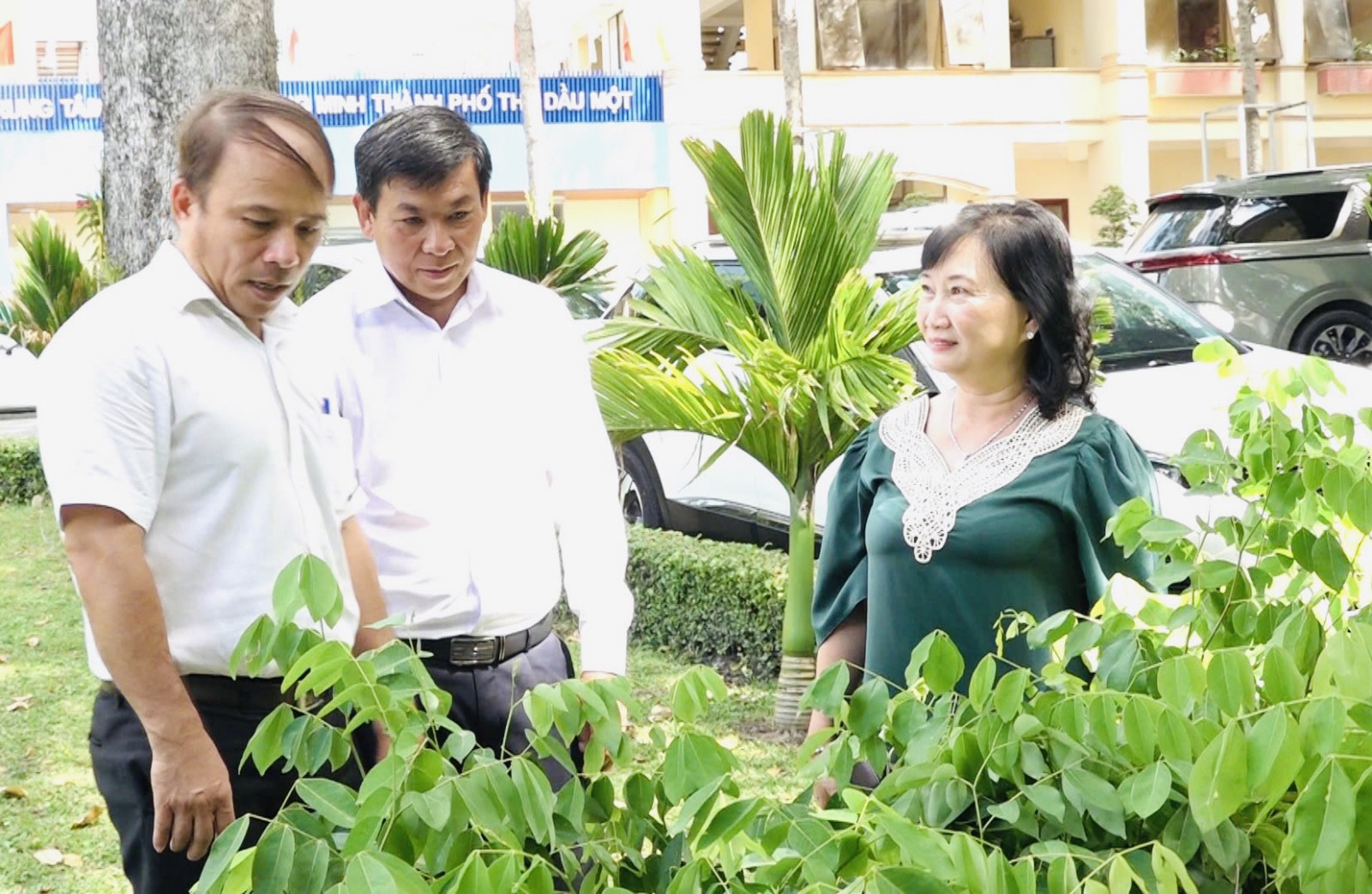 Lãnh đạo TP.Thủ Dầu Một tiếp nhận số cây xanh do bà Nguyễn Hồng Loan ủng hộ