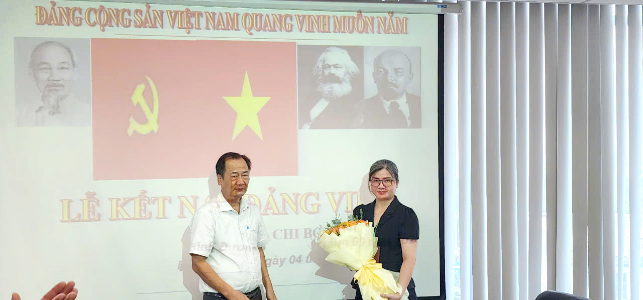 Đồng chí Lê Văn Tân - Bí thư Chi bộ 2 lên trao Quyết định Kết nạp Đảng và tặng hoa cho đồng chí Nguyễn Quốc Khánh, đồng thời nói rõ nhiệm vụ, quyền hạn của người đảng viên, nhiệm vụ của Chi bộ. Phân công 02 đảng viên chính thức (Nguyễn Thị Kim Dung, Nguyễn Thành Trung) giúp đỡ đồng chí Nguyễn Quốc Khánh trong thời gian đảng viên dự bị.