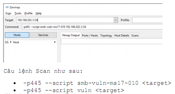 1 Địa chỉ đường mạng đơn vị đang dùng; 2 câu lệnh scan