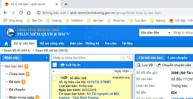 Bước 3. Mở phần mềm quản lý văn bản (qlvb-stnmt.binhduong.gov.vn)