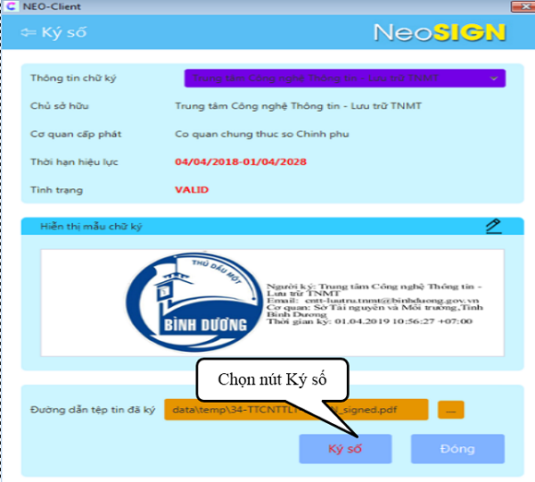 Hướng dẫn ký số trên phần mềm quản lý văn bản tại Sở Tài nguyên và Môi trường