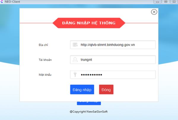 Bước 2. Chọn nút “Đăng nhập” vào hệ thống và cấu hình như sau: