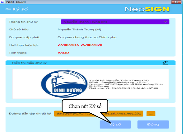 - Màn hình tiếp theo hiện ra, người ký kiểm tra thông tin và chọn nút “Ký số”