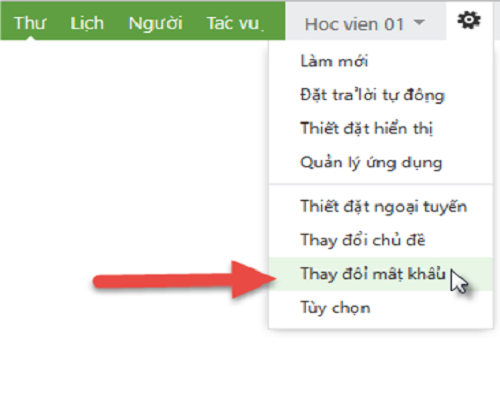 Sau khi đăng nhập vào hộp thư, bạn nhấn vào biểu tượng Thiết đặt  phía trên bên phải màn hình sau đó chọn Thay đổi mật khẩu (xem hình)