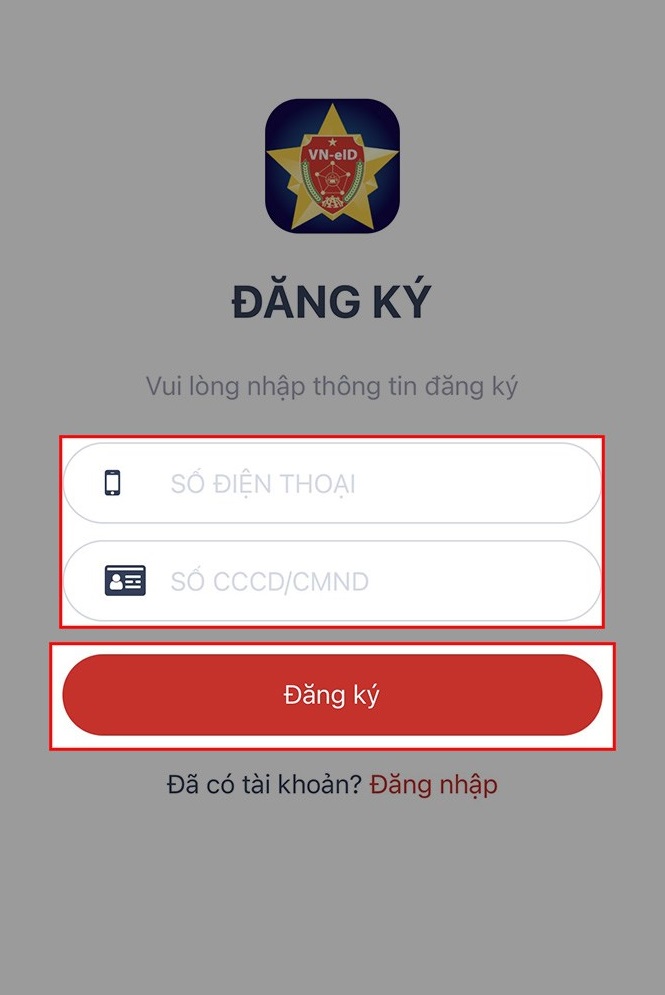Nhập số điện thoại và số CCCD/CMND > Chọn Đăng ký