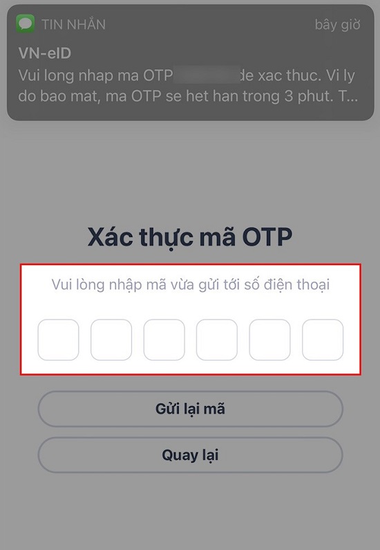 Nhập mã xác thực mà bạn nhận được qua tin nhắn