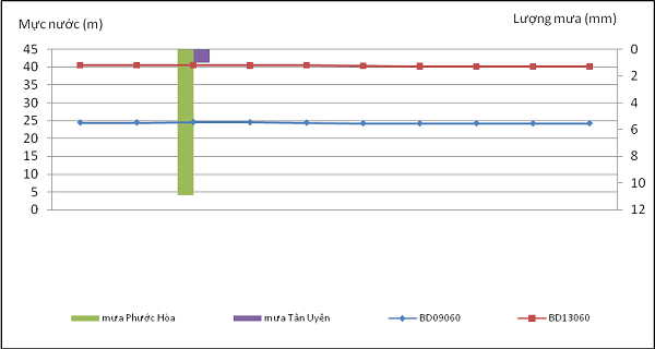 Hình 5: Biểu đồ tích lũy lượng mưa trung bình và mực nước tầng Pliocen dưới
