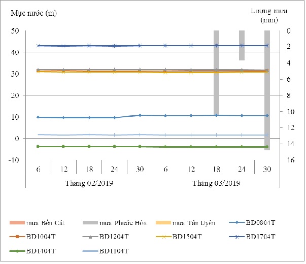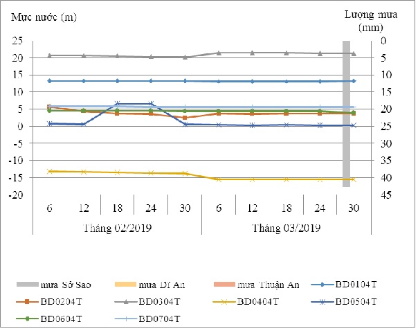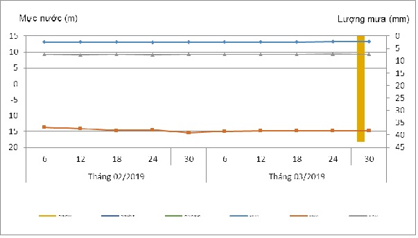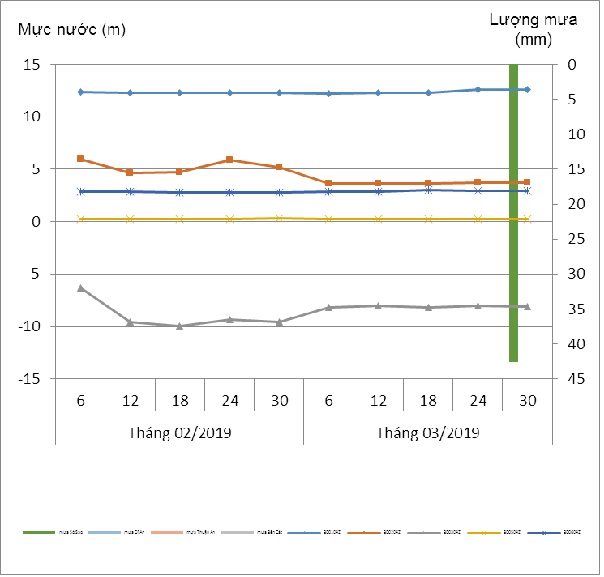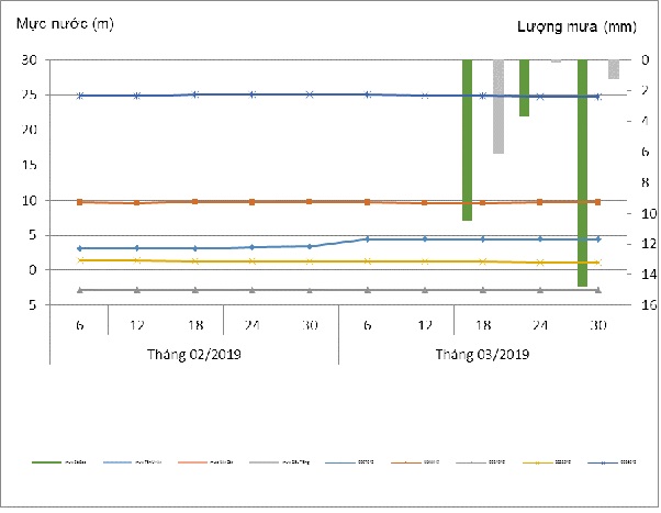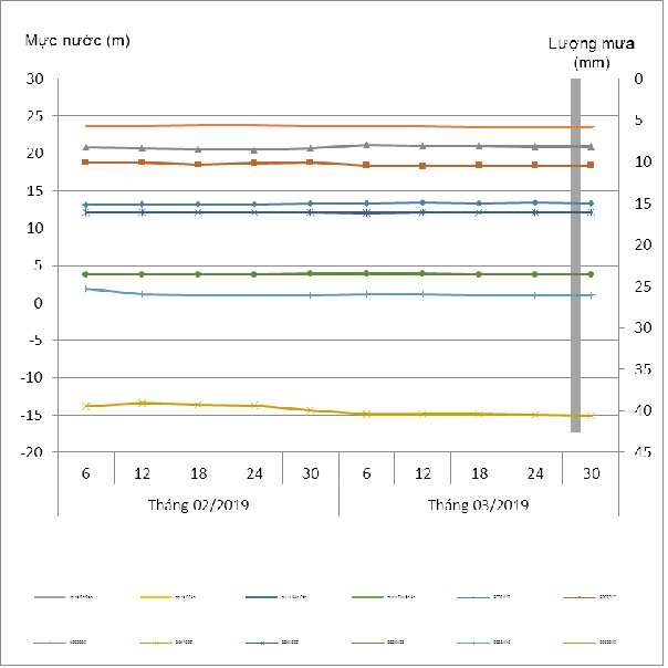 1. Diễn biến mực nước dưới đất tháng 03/2019