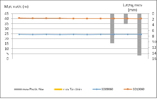 Hình 6: Biểu đồ tích lũy lượng mưa trung bình và mực nước tầng Pliocen giữa