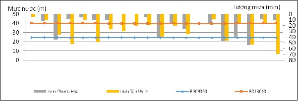 Hình 9: Biểu đồ tích lũy lượng mưa trung bình và mực nước tầng Pliocen dưới