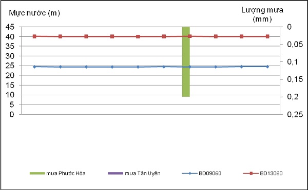 Hình 6: Biểu đồ tích lũy lượng mưa trung bình và mực nước tầng Pliocen giữa
