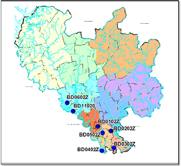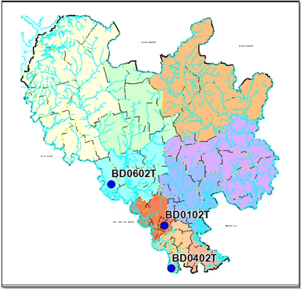 Tầng Pleistocen dưới có 08 công trình quan trắc được bố trí chủ yếu ở phía nam của Tỉnh, đặt tại các vị trí đại diện và có khả năng quan trắc chính xác nhất động thái nước dưới đất (xem Hình 3)
