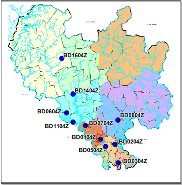 Tầng Pliocen dưới có 10 công trình quan trắc phân bố tại 10 điểm khác nhau, bảo đảm quan trắc chính xác các thông số động thái nước dưới đất đại diện cho tầng chứa nước trên địa bàn Tỉnh (xem Hình 8).