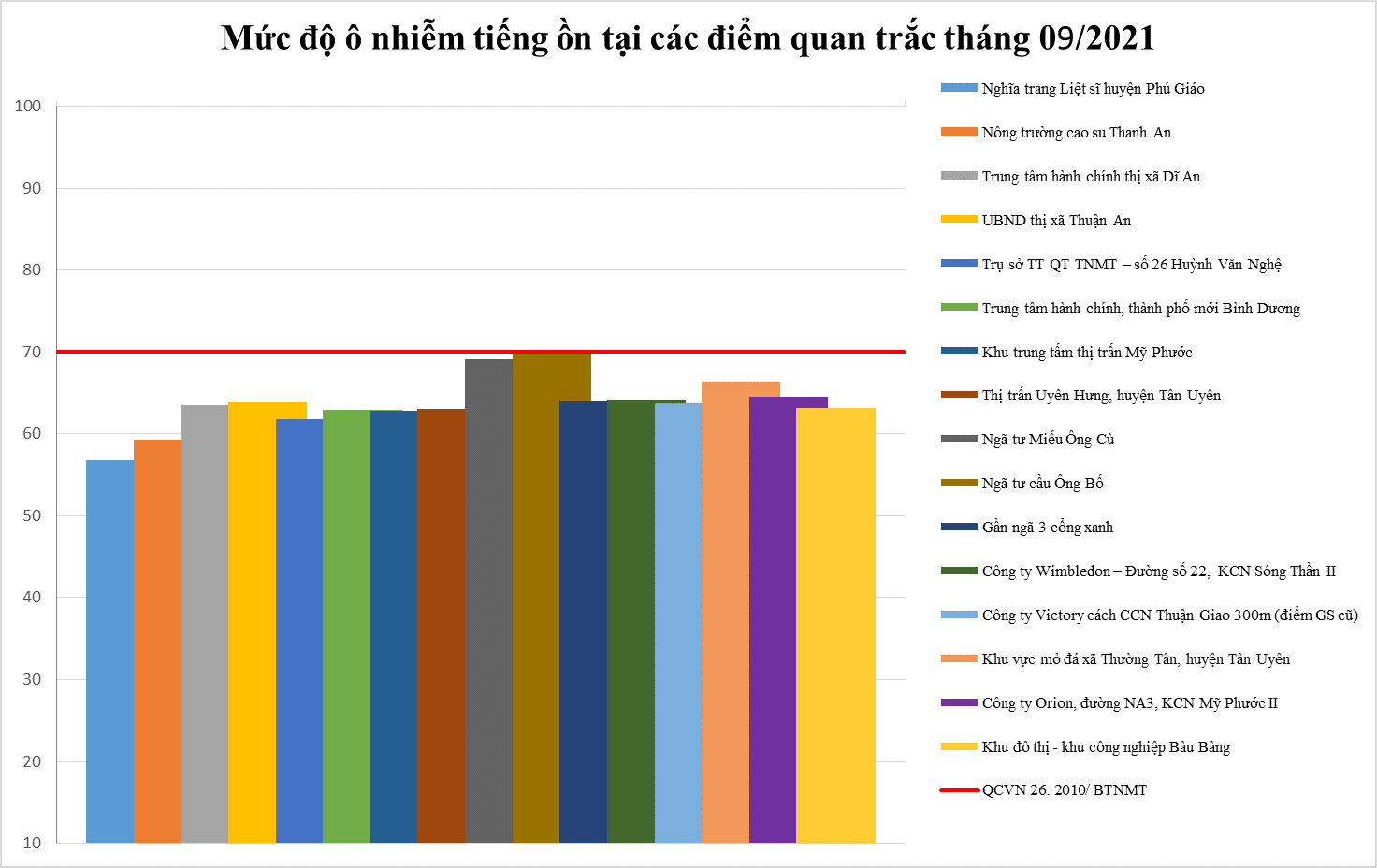 Biểu đồ 2: Mức độ ô nhiễm tiếng ồn tại các điểm quan trắc không khí tháng 09/2021