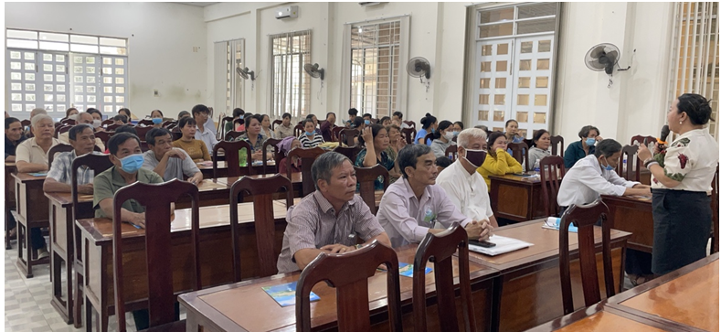 Ngoài việc thông tin những hiểu biết cơ bản cho người dân về biến đổi khí hậu và cách thích ứng với biến đổi khí hậu, báo cáo viên – Thạc sĩ Phạm Thị Diễm Phương- Giảng viên Trường Đại học Tài nguyên và Môi trường Thành phố Hồ Chí Minh còn hướng dẫn cách phân loại rác tại nguồn, hạn chế sử dụng túi nilong, chai nhựa sử dụng 01 lần,…. thay vào đó người dân cần thay đổi hành vi và thói quen sinh hoạt của chính bản thân để góp phần bảo vệ chính mình và xã hội phù hợp với Ngày Môi trường Thế giới 05/6/2022 được Chương trình Môi trường Liên hợp quốc (UNEP) phát động với chủ đề “Chỉ một Trái Đất” (Only One Earth) mục đích truyền tải ý nghĩa thông điệp cùng xây dựng lối sống bền vững, hài hòa với thiên nhiên sử dụng hợp lý tài nguyên thiên nhiên, đa dạng sinh học và ứng phó với biến đổi khí hậu.