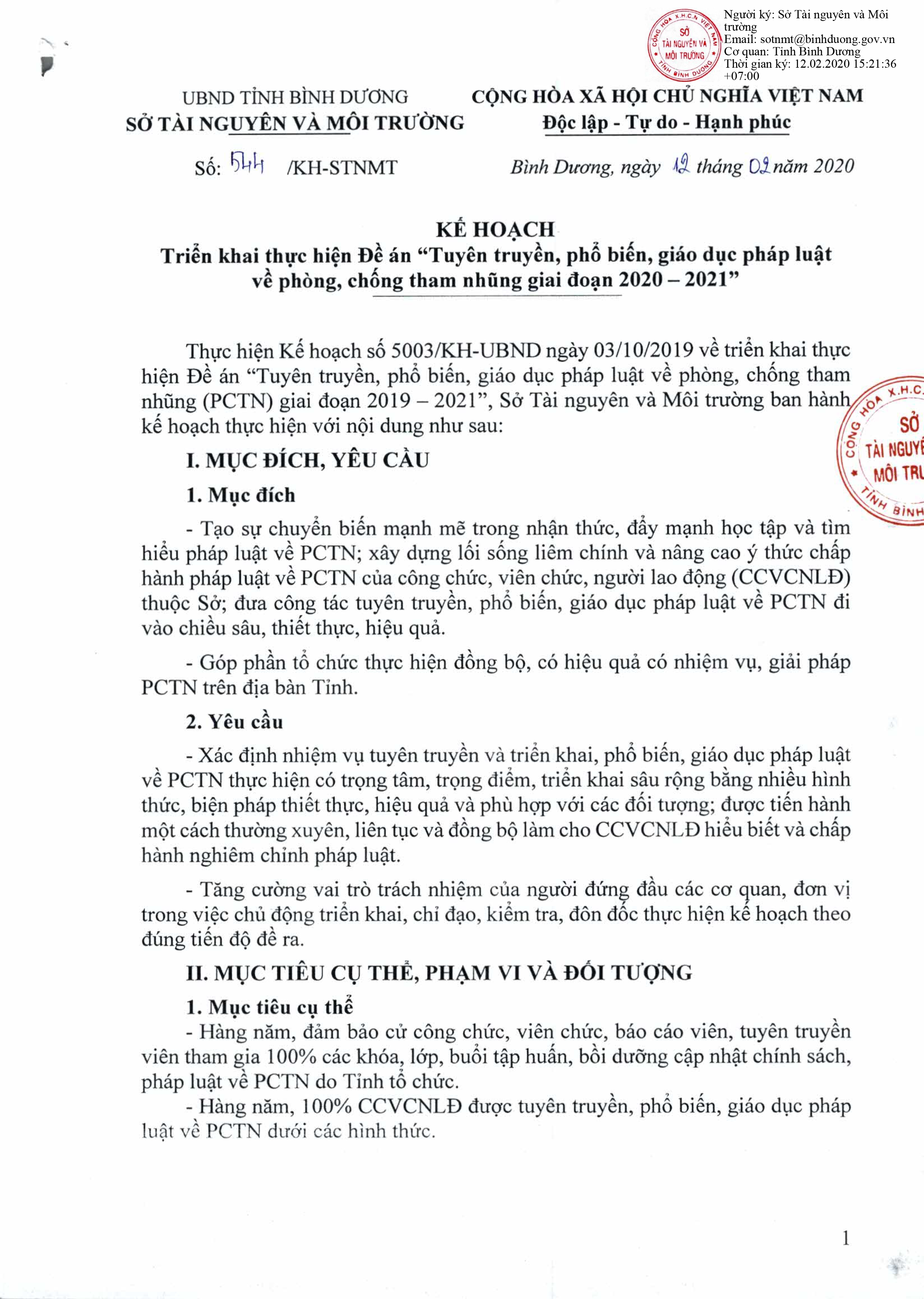 Kế hoạch số 544/KH-STNMT ngày 12/02/2020