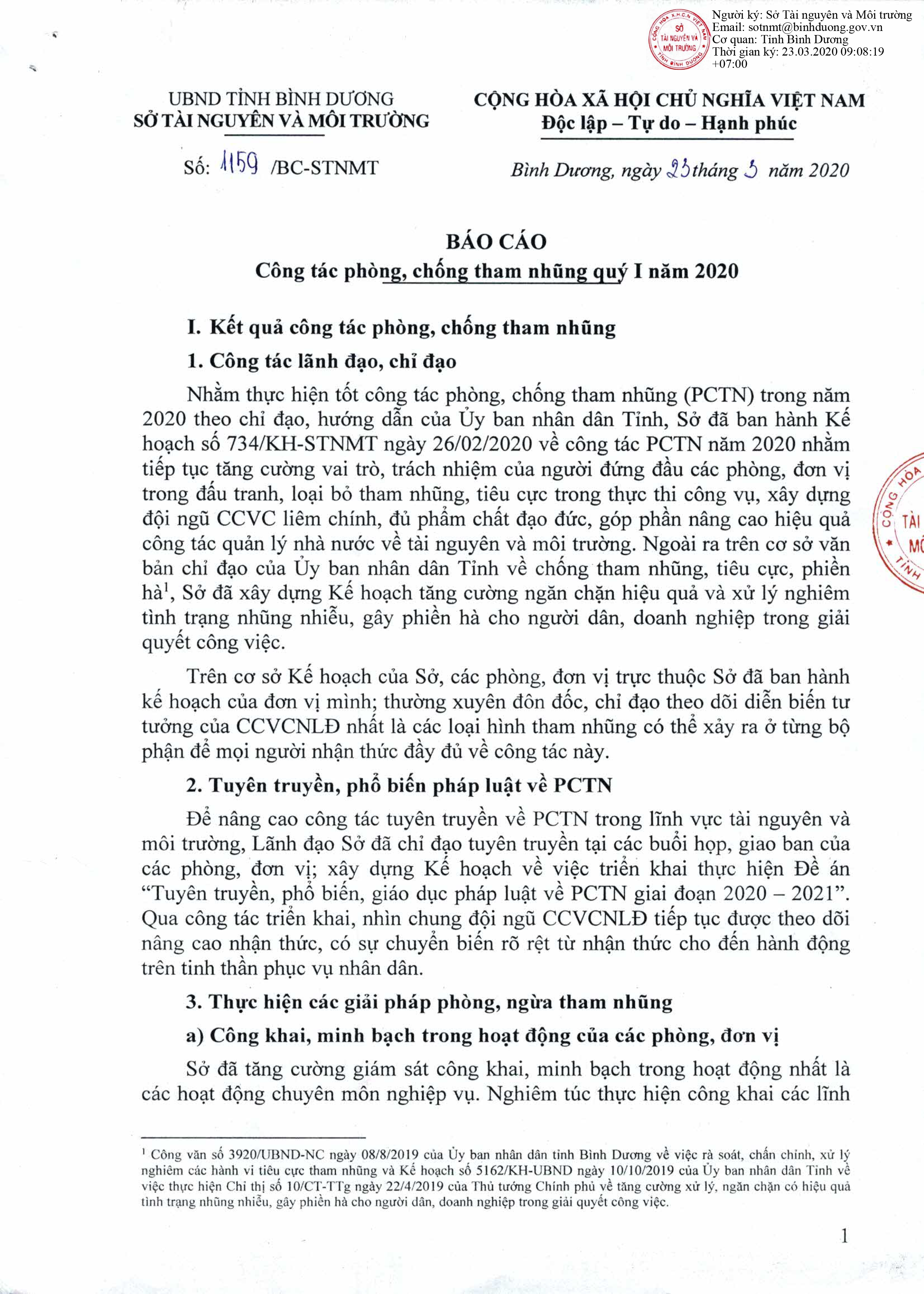 Báo cáo số 1159/BC-STNMT ngày 23/3/2020