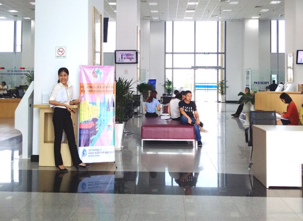 Hình 6: Các Standee tuyên truyền Ngày Nước tại khu vực tiếp công dân của Trung tâm Hành chính công tỉnh Bình Dương qua các năm