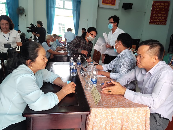 Đồng thời qua đó, nhiều nội dung vướng mắc về các vấn đề như xin hướng dẫn về các trường hợp tách thửa sổ chung, tách thửa thừa kế, tách thửa thông qua Hội đồng cá biệt, cập nhật đường trên sổ, hướng dẫn giải quyết lối đi chung, xin chuyển mục đích, giải quyết hồ sơ theo bản án của Toà,… đều được đoàn hướng dẫn, giải đáp tận tình và theo quy định. Đồng thời, qua đó một số người dân xin vướng mắc đối với việc không có tiền chuyển mục đích nên xin ghi nợ đất thổ cư.