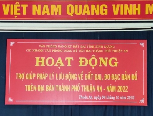 Năm 2022, Đoàn cơ sở Sở Tài nguyên và Môi trường cùng với Văn phòng đăng ký đất đai (VPĐKĐĐ) đã triển khai hoạt động Trợ giúp pháp lý lưu động cho người dân trên 12 xã, phường trên địa bàn tỉnh Bình Dương; trong tháng 10/2022, tiến hành Trợ giúp pháp lý tại địa bàn thành phố Thuận An nhằm giải quyết các khó khăn vướng mắc của người dân về thực hiện các thủ tục hành chính (TTHC) liên quan đến đất đai.