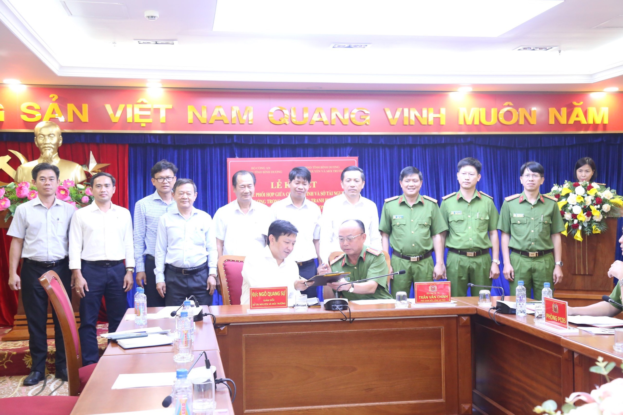 Chính thức ký kết Quy chế phối hợp trong công tác đấu tranh phòng chống tội phạm, xử lý vi phạm pháp luật trong lĩnh vực tài nguyên và môi trường trên địa bàn tỉnh Bình Dương giữa lãnh đạo Công an tỉnh và Sở Tài nguyên và Môi trường.