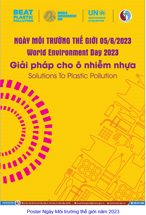 Ngày Môi trường thế giới 05 tháng 6 năm 2023 được Chương trình Môi trường Liên hợp quốc (UNEP) phát động với chủ đề “Giải pháp cho ô nhiễm nhựa” (Solutions to Plastic Pollution), trong đó tập trung thực hiện chiến dịch “Chống ô nhiễm nhựa” (Beat Plastic Pollution).