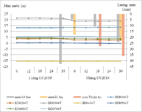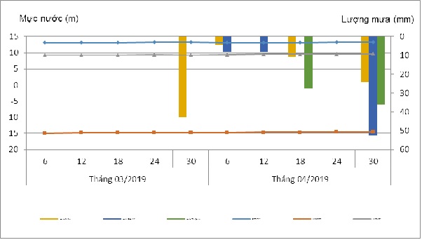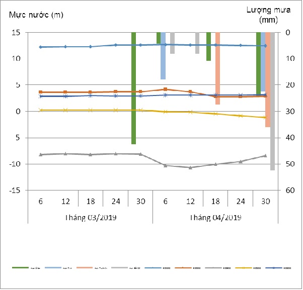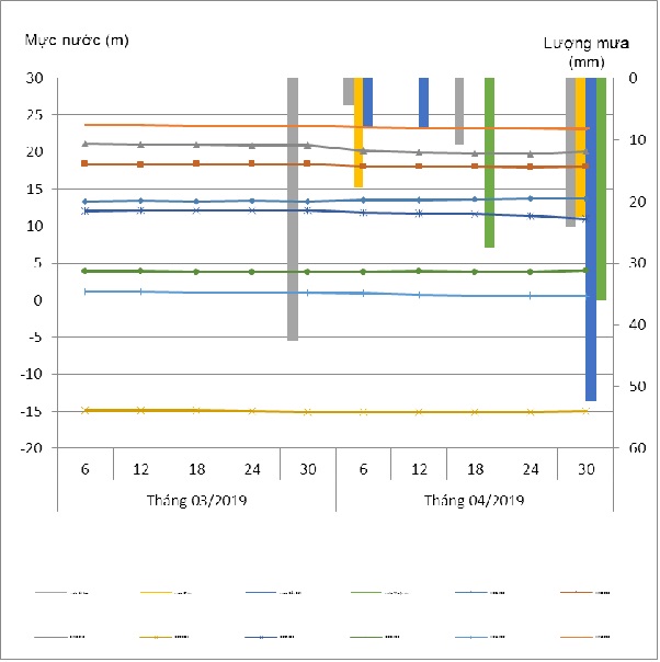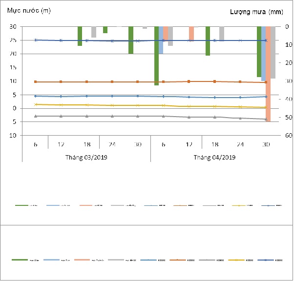 1. Diễn biến mực nước dưới đất tháng 04/2019