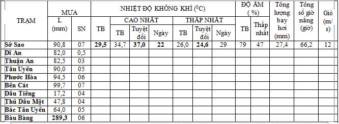 (Nguồn Đài KTTV tỉnh Bình Dương)
