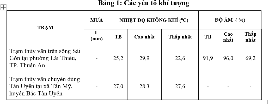 (Nguồn Trung tâm Quan trắc Kỹ thuật Tài nguyên và Môi trường tỉnh Bình Dương)
