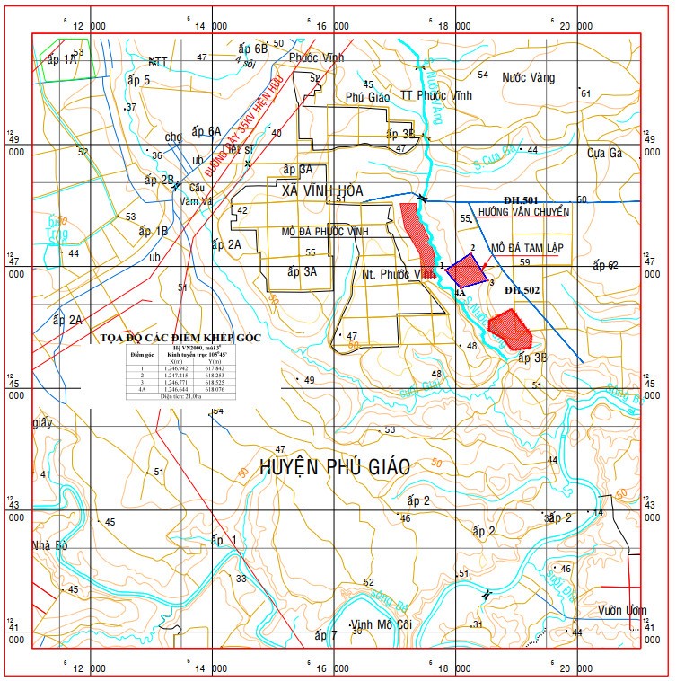 3. Tên dự án: Dự án đầu tư khai thác mỏ đá xây dựng Tam Lập xuống sâu cote-20, điều chỉnh diện tích 21,0ha, công suất khai thác 1.000.000m3/năm nguyên khối, xã Tam Lập, huyện Phú Giáo, tỉnh Bình Dương.