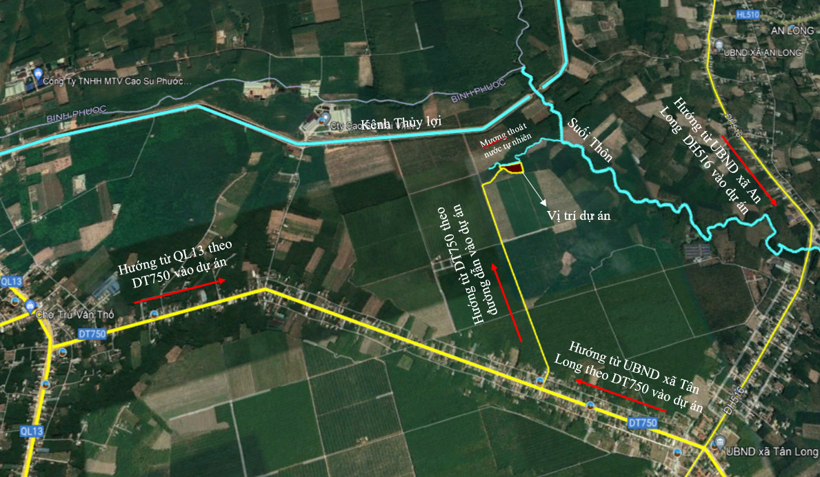 - Phạm vi thực thiện: Khu đất thực hiện dự án là đất của chủ hộ kinh doanh Hà Thị Nguyệt thuộc thửa đất 145 tờ bản đồ số 22, ấp 3, xã Tân Long, huyện Phú Giáo, tỉnh Bình Dương. Tổng diện tích đất sử dụng là 10.739m2.