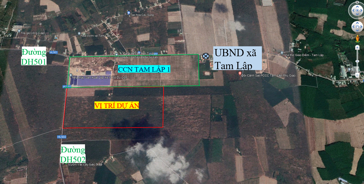 - Phía Bắc: tiếp giáp đất cụm công nghiệp Tam Lập 1.